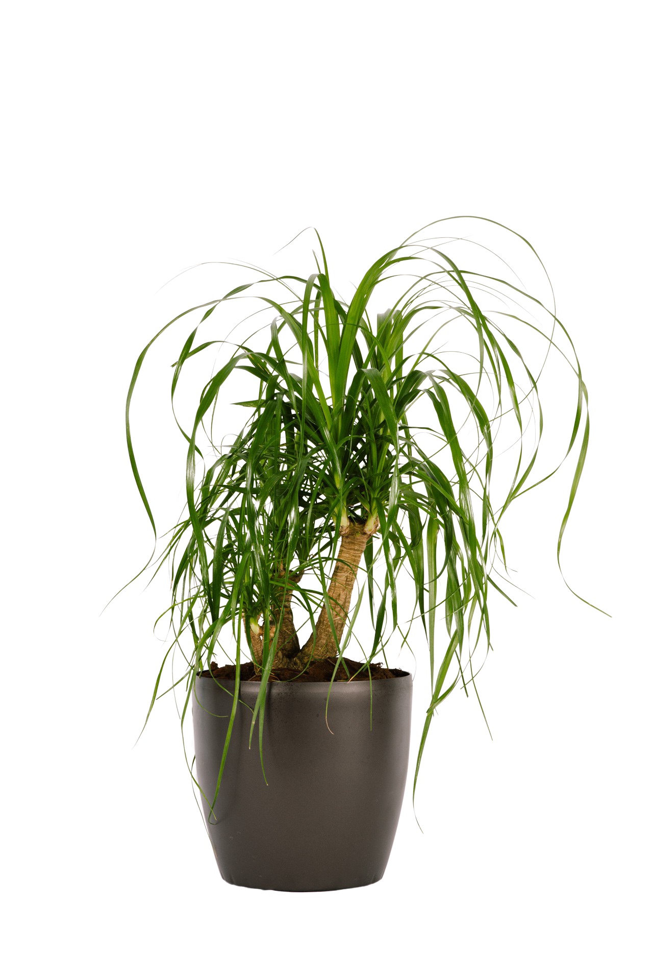 Beaucarnea is an evergreen indoor shrub with origins from Mexico. It is particularly popular for its resilience and its ability to store water in the base of its trunk. The older the plant, the less watering it requires. It is accustomed to dry conditions, making it ideal for those who don’t have much time for plant care. It has long lance-shaped leaves that hang like wings. In terms of height, it can reach about 2 meters, and when it reaches a mature age, it produces flowers in a pale white color.