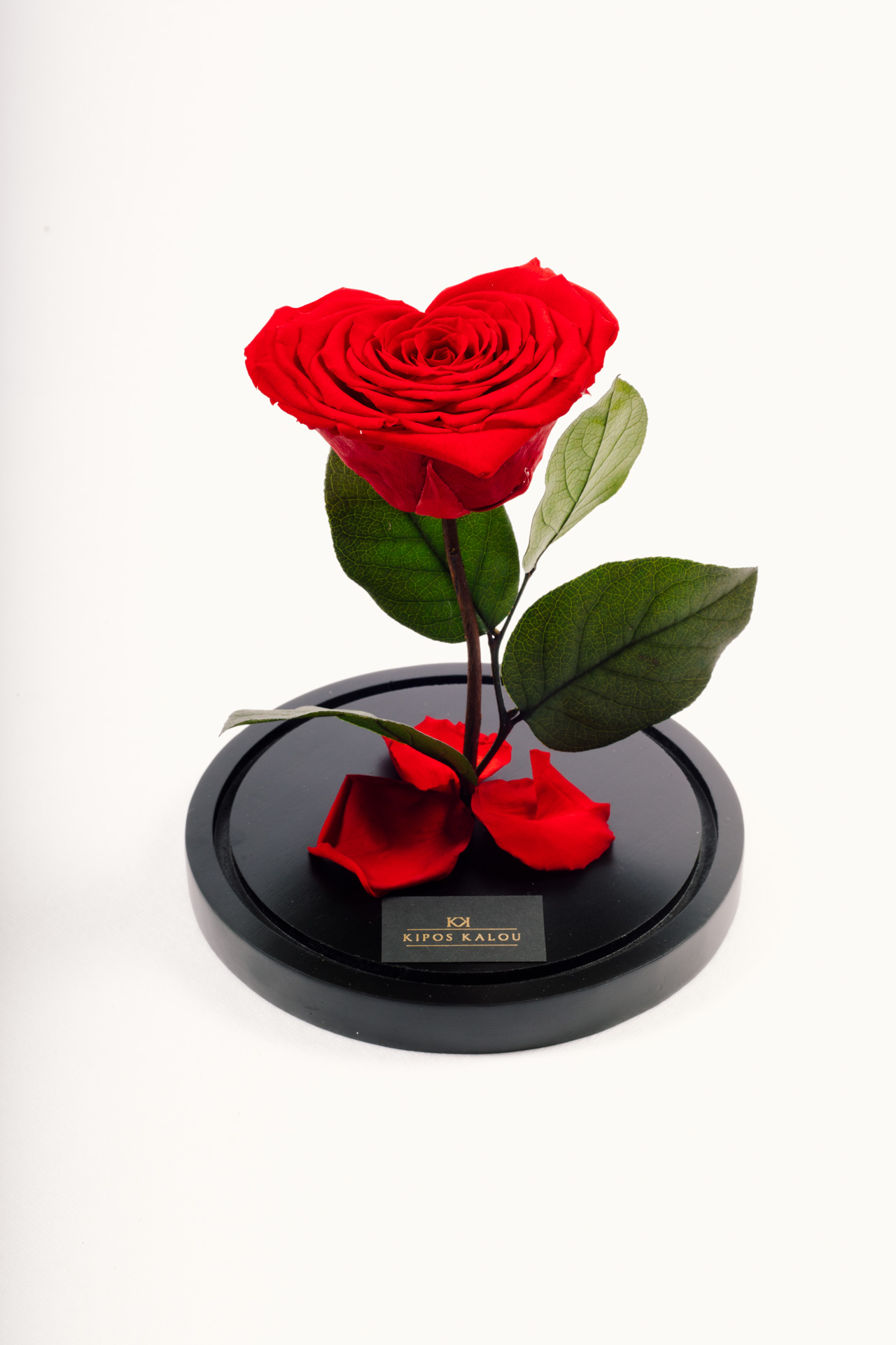 Red XXL Heart shaped Forever Rose in dome. The gift packaging includes a luxury bag and a fabric ribbon.