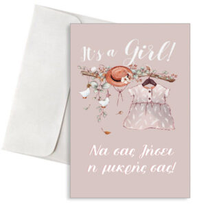 Ευχετήρια Κάρτα για νεογεννητο κορίτσι Vintage – “It’s a Girl!”