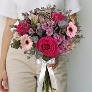 Delivered inflated on a stick and decorated with a white ribbon with gold foil.