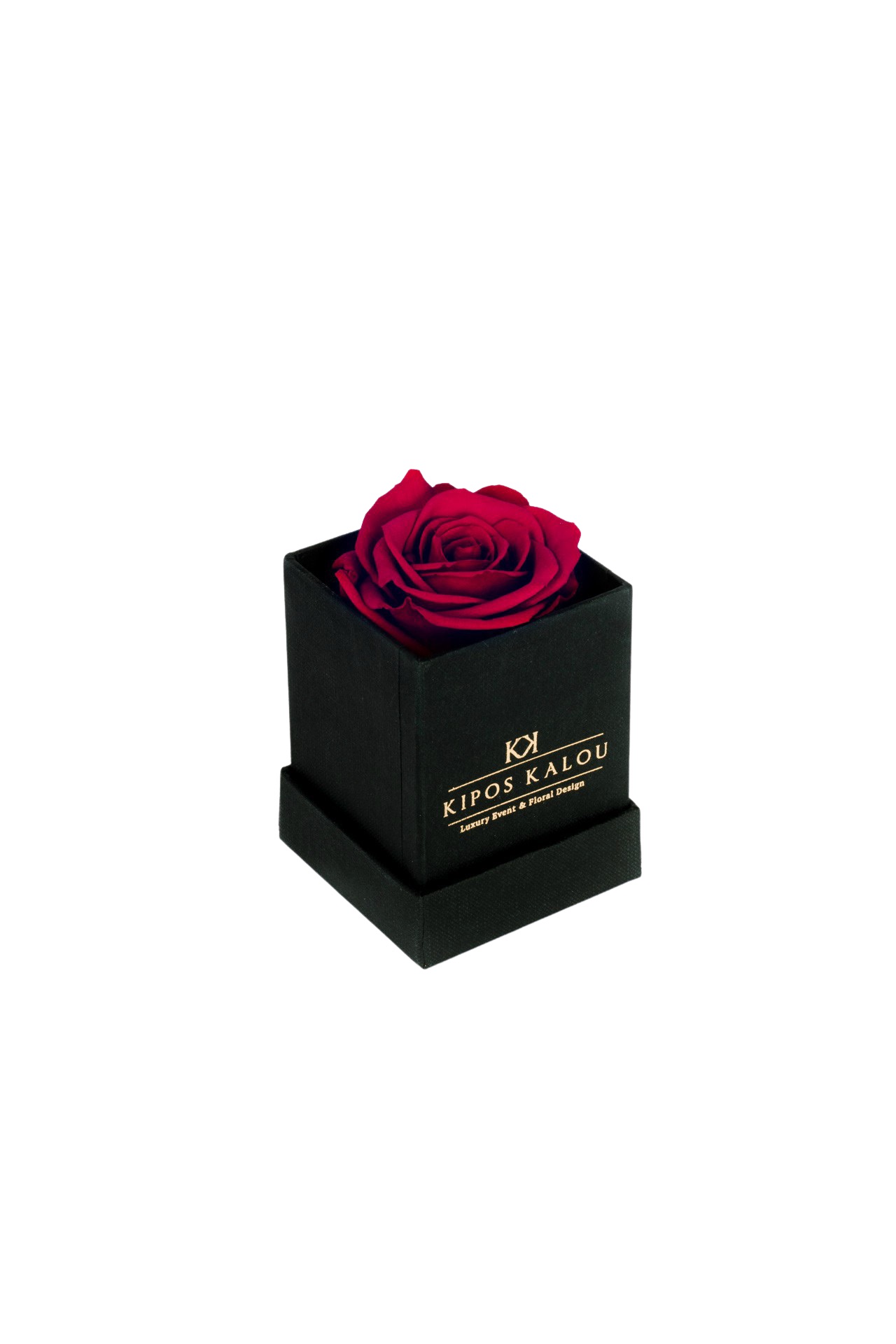 Cherry XL Forever Rose in a black box. The gift packaging includes a luxury bag and a fabric ribbon. Experience true luxury with 100% real roses that last for 3 years! We select varieties from Ecuador for their excellent quality and wonderful texture.