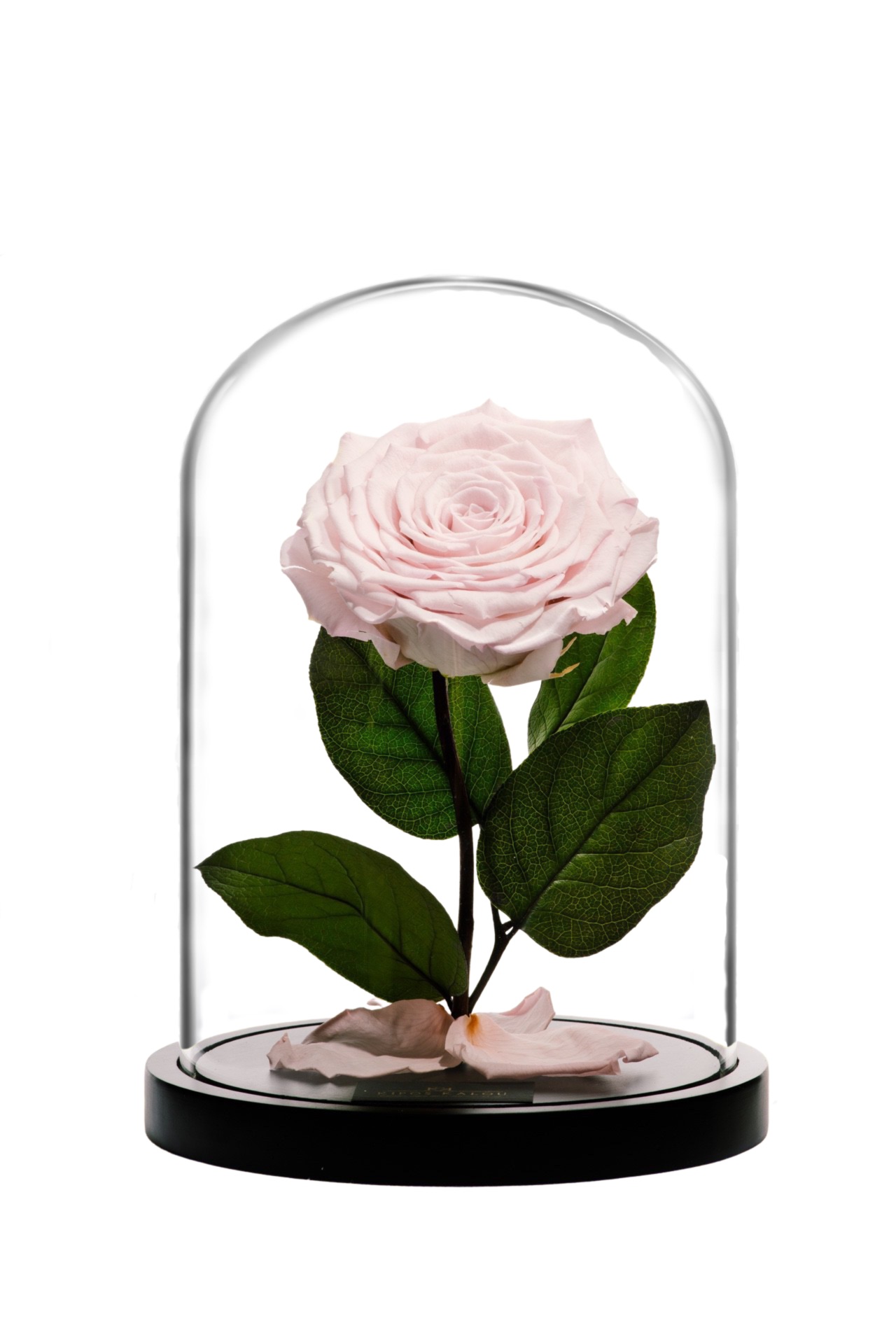 Pink XXL Forever Roses in dome. The gift packaging includes a luxury bag and a fabric ribbon.